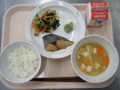 今日の給食は、麦ごはん・牛乳・魚の梅肉焼き・海藻と野菜のあえ物・そら豆・みそ汁です。