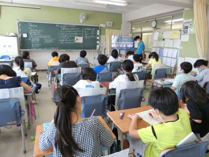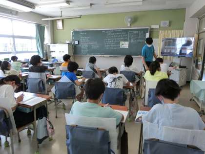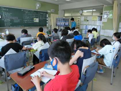 「人や動物の体」の学習です。食べ物がどのように変化していくかについて学びます。唾液のについて実験をしたいところですができませんので、実験映像を見て進めました。