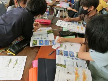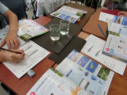 「魚のたんじょう」の学習です。メダカの産卵の準備を通して、雄と雌の見分け方を知り、体のつくりを学びました。ビーカーに移したメダカをじっくり観察しながら、雄と雌を見分けました。