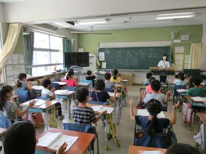 「かっこう」の学習です。旋律の音の動きや音色に気を付けて、小さな声で歌ったり、演奏したりしました。