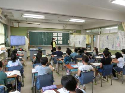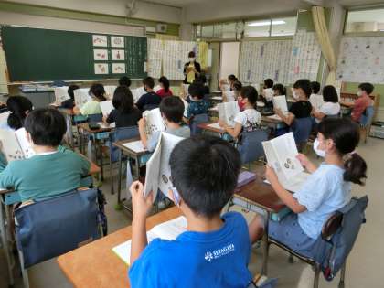 段落とその中心を捉えて読み、感想を伝え合おう「こまを楽しむ」の学習です。単元も終盤に入りました。全部の段落を読み終えましたので、6つのこまから、自分が一番遊んでみたいものを選び、その理由をワークシートにまとめました。書き終わった児童から、発表の練習をしました。