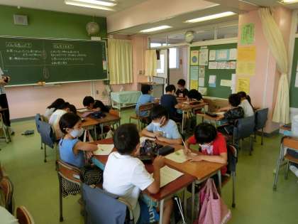 「九品仏の町を知ろう『商店調べ』」の学習です。6月下旬に訪問する予定の、九品仏商店街の商店調べに向けて準備をしています。自分が訪問するお店について、働く人たちの思いや、お店の工夫について予想しワークシートに書きました。考えた予想を確かめるために、グループごとにどんな質問をしたらよいか考えました。