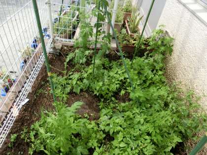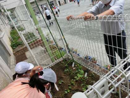 教室で育てた観察用のヘチマを学年園に植え替えました。ゴーヤもぐんぐん伸びています。