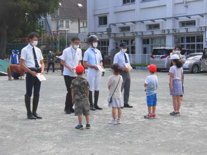 最後に代表児童へ、本が贈呈されました。1・2年生全員に1冊ずついただきましたので、明日持ち帰ります。そして、馬と一緒に、1・2年生で記念撮影をしました。あっという間の楽しい2時間でした。