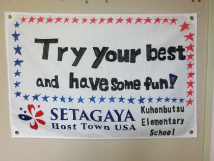 1か月後に開幕を控えたオリンピック・パラリンピック2020東京大会に向け、世田谷区をホームタウンとするアメリカ合衆国選手団の皆さんを応援する横断幕を作成しました。全校児童からアイデアを募集し、6年生がキャンバスに描いてくれました。「Try your best and have some fun!」九品仏小の子どもたちの声援を背にぜひとも活躍してほしいです。 選手たちがキャンプを張る大蔵運動公園等に掲揚される予定です。お近くに行かれた際に、ぜひ探してみてください。