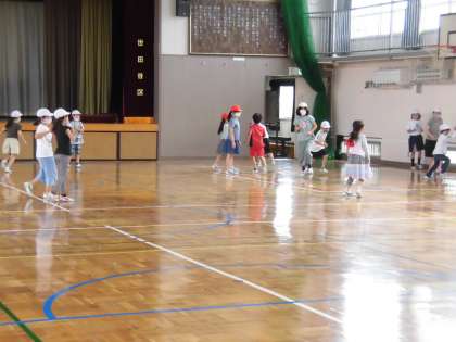 少し体育館は蒸し暑かったのですが、子どもたちは元気いっぱいに楽しく遊んでいました。1年生から6年生まで、全員が一つの遊びにしっかり参加している様子が見られました。