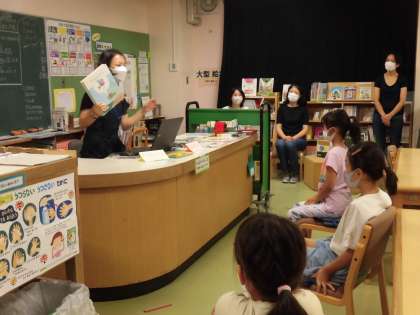 「あおくんときいろちゃん」は、国語で学習した「スイミー」の作者であるレオ・レオーニさんの作品です。図書室にあるレオ・レオーニさんの作品を司書の先生に紹介していただき、夢中になって読む姿も見られました。