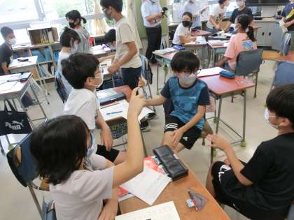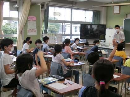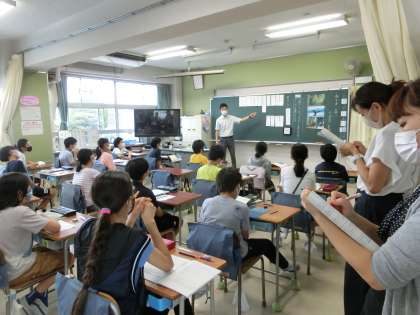校内研究の研究授業、第2回目です。今日は、6年1組で国語「私と本 森へ」の学習です。「森へ」のキャッチコピーを作るために、テーマを考え、伝え合いました。一人一人、筆者が伝えたいことについて自分の考えをもち、よく伝え合えていました。