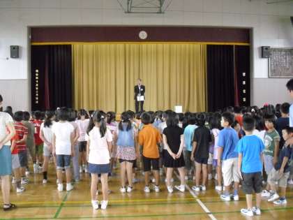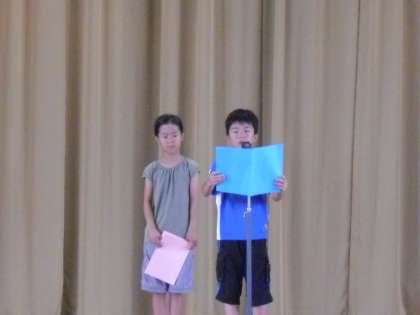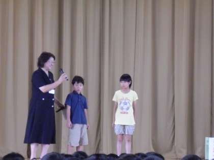 学校に明るい 元気な子ども達の声が響き渡っています。今日から、第二学期が始まりました。児童代表のことば・・・転入生の紹介・・・。