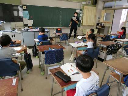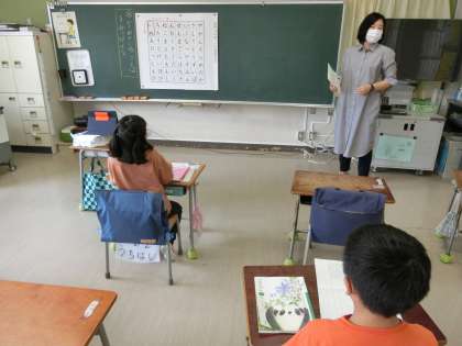 分散登校3日目、Aグループです。3時間目は1,2組とも国語「たのしいな ことばあそび」の学習です。身近なことを表す語句の数を増やし、語彙を豊かにしていきます。
