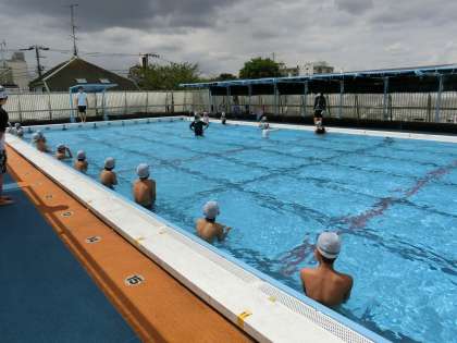 3時間目Aグループの6年生は、体育「水泳」です。2学期初めて泳ぎます。一人一人がクロールや平泳ぎの技能を高めるために課題を見付け練習しました。