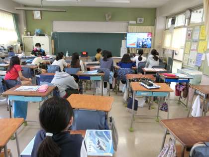 5年生3時間目は、オリンピック・パラリンピック教育のオンライン授業「魚とオリンピックの関係は?〜文化と多様性〜」の学習です。オリンピック・パラリンピック食材調達基準に合致した魚介類の紹介をしてもらい、国際的な食糧調達の流れを把握しながら、日本の文化である和食文化を楽しむコツを学びました。Bグループの児童は、家庭で同じものを見て学習しています。