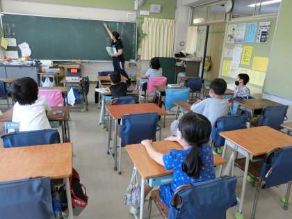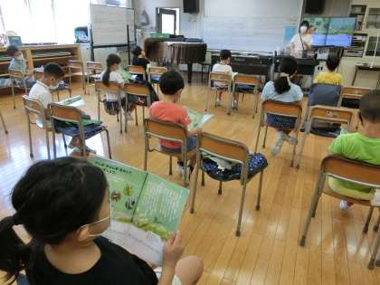 2年生は3時間目、1組は国語「言葉遊びをしよう」の学習です。言葉の響きやリズムを楽しみました。2組は音楽「虫の声」歌詞の表す情景や気持ちを想像しながら歌いました。