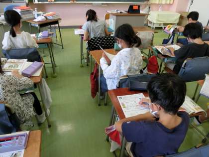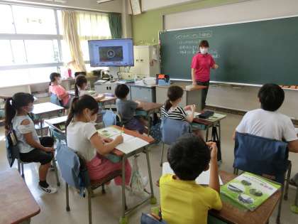 5時間目3年生は、1組社会「事故や事件から くらしを守る」2組理科「こん虫を調べよう」の学習です。