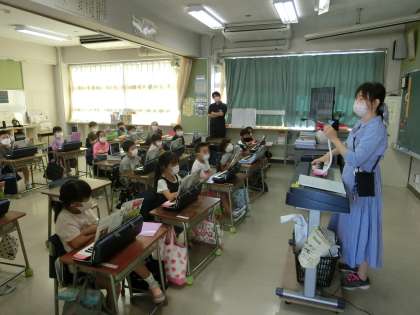 1組は、3時間目音楽「どれみとなかよくなろう」です。鍵盤ハーモニカの使い方を学習しました。2組は、5時間目算数「かずをせいりして」の学習です。咲いたあさがおの数を絵グラフに表して、見やすく整理しました。