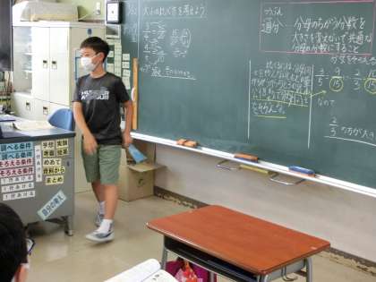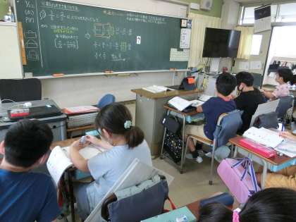1,2組とも、3時間目算数「分数の大きさとたし算・ひき算」です。異分母の分数の大小の比べ方を考え、通分の意味を学習しました。
