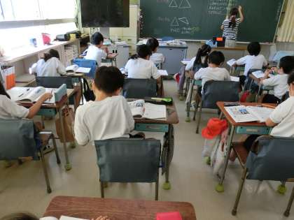 1,2組とも、3時間目算数「三角形」です。昨日の研究授業をいかして、二等辺三角形の性質と構成要素について学習しました。