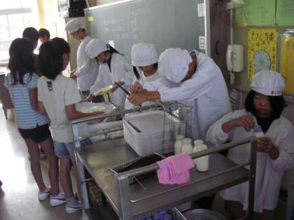 下の画面は、・・・4年生の給食当番です。専科授業でもどってくる時間差がありましたが、進んで順次当番活動をしていました。