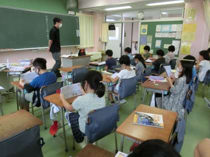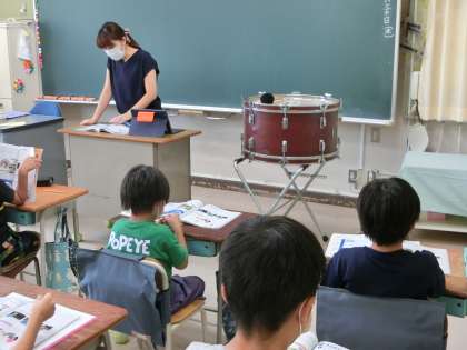 5時間目、1組は理科「音をつたえよう」の学習です。大太鼓を使って実験をしました。2組は国語「ちいちゃんのかげおくり」です。四場面のちいちゃんの気持ちと読み手の気持ちを比べて考えました。