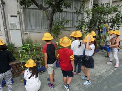 2組は、接近している台風の対策で、あさがおの鉢を移動させているところです。