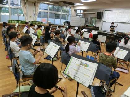 2組音楽「ゆかいなもっきん」の曲で、リコーダーの部分の階名唱をし、タンギングに気を付けて演奏しました。