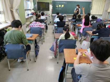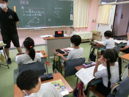 3時間目、1,2組とも算数「三角形」です。二等辺三角形の角の相等について学習しました。