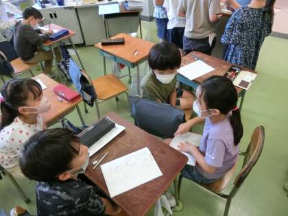 5時間目、1,2組とも学級活動「たてわり班遊びの計画を立てよう」です。各班ごとに遊びを決めたり、役割を決めたりしました。ルール説明も協力して作りました。