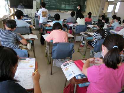 1時間目、1組は社会「自動車をつくる工業」の学習です。自動車はどのような地域で作られているのか、調べました。