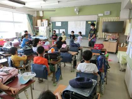 2組、授業が終わって、帰りの会です。今日のよかったことを発表しました。