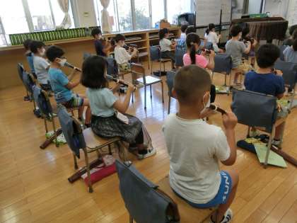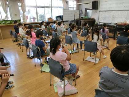 音楽「ゆかいなもっきん」の学習です。歌詞の面白さや、弾んだリズムの楽しさを感じて、歌ったり、リコーダーで演奏したりしました。