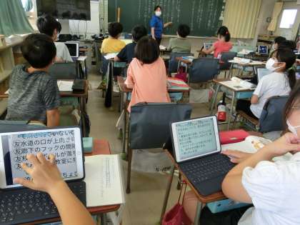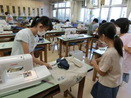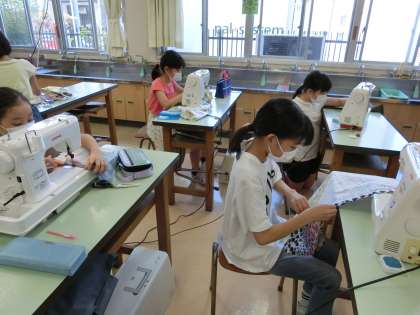 1組、3,4時間目家庭「ミシンにトライ!手作りで楽しい生活」の学習です。安全に気を付けながらアイロンをかけ、ミシンでエプロン製作をすすめています。どの子も真剣です。5時間目国語「よりよい学校生活のために」では、互いの立場を明確にして話し合う進め方を学習しました。