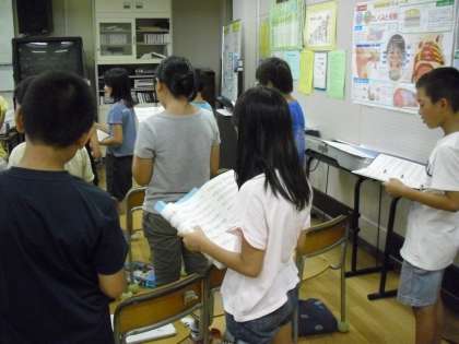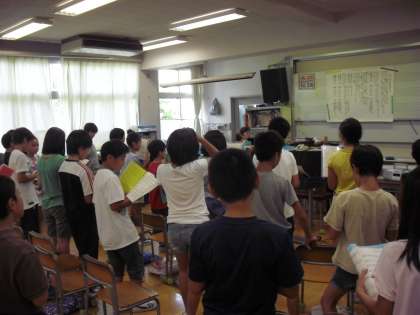 5年生は、“専科授業:音楽”HEIWAの鐘の歌をきれいま声で・・・合唱していました。