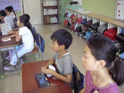 健康観察の様子です。子どもたちは、友達の様子を静かに聞いていました。