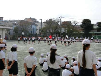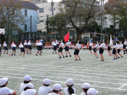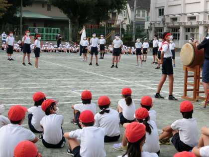 運動会全校練習の2回目です。今日は応援合戦と閉会式等の練習を行いました。応援は、応援団しか声が出せませんが、みんなは、手拍子や振り付けで盛り上げます。赤も白も張り切っています。