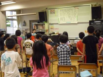 1時間目は・・・“専科:音楽の授業:太陽のサンバ”を歌っていました。何人かは、自然にリズムに合わせて体が動いていました。普段の音楽の指導の賜物です。