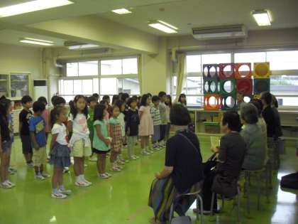 ・・国語で学習した“詩の朗読”・・教科 日本語で学んだ詩や和歌などを音読しました。最後に、音楽で学習した歌のプレゼント・・・・参加された祖父母の方々から、たくさんのは声援をいただきました。このあと、2年生が給食の準備・・・会食になります。