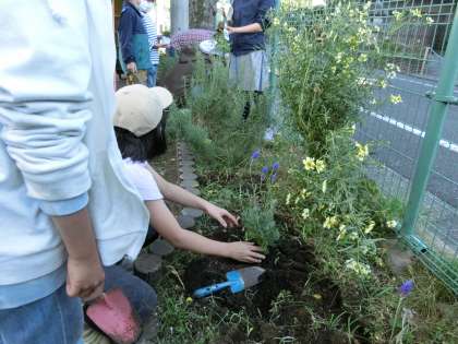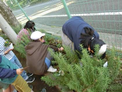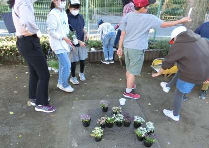 5,6年生は、6時間目「委員会活動」です。環境委員会が、場所を考えながら、花の苗を植えています。グリーンサポーターの方にも助けていただきました。