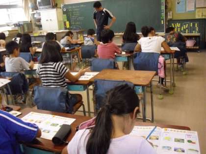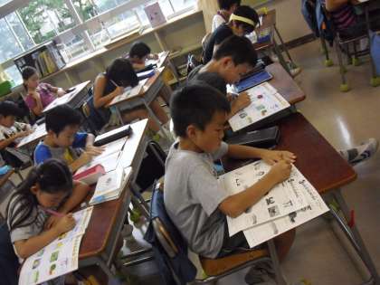 ローマ字の練習が5時間目の授業です。お手本をしっかり見て・・・50音の字を思い出して・・・丁寧に書いていました。