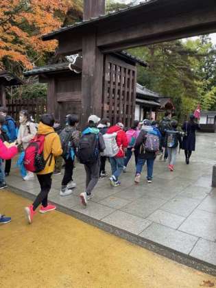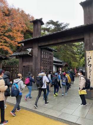 日光江戸村に着きました。集合写真を撮ったあと、行動班で回ります。たくさんの学校がきています。