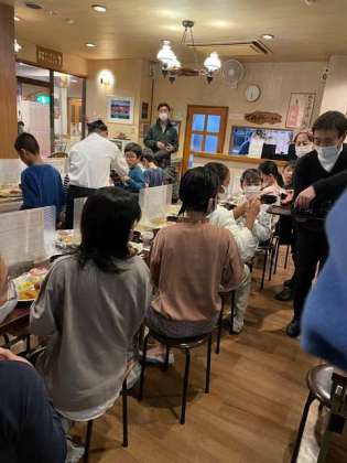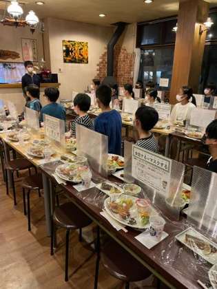 夕食です。先に1組から、いただきました。入浴をすませ、元気もりもりです。