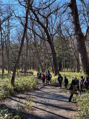 戦場ヶ原ハイキングです。大変気持ちがよいです。途中、水分補給をしています。