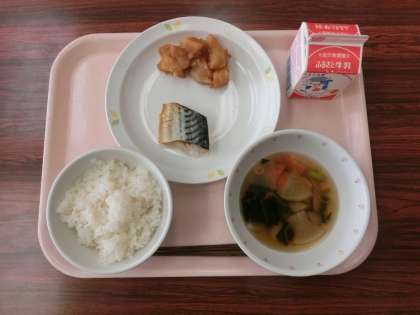今日の給食は、ごはん・牛乳・魚の塩焼き・じゃがいもの甘辛煮・せたがや根菜汁です。