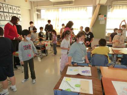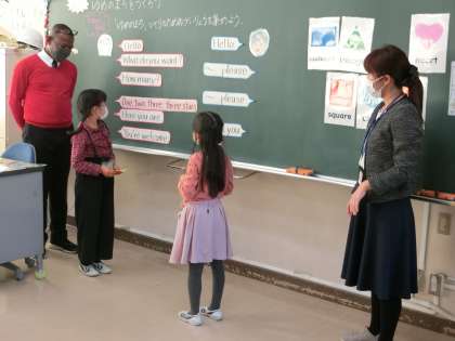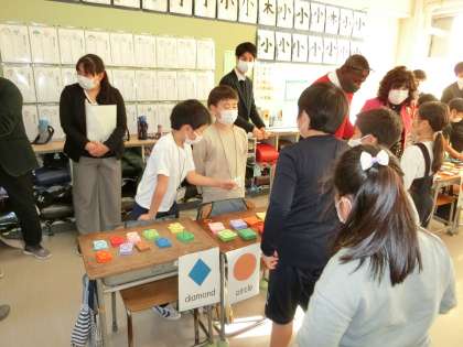 3年生で、外国語活動の研究授業を行いました。 Let's Try 1「This is for you.」より、「ゆめのまちをつくろう」というオリジナル単元です。学習の振り返りでは、「英語で会話がたくさんできた。」「お買い物が楽しかった。」などの感想が出ました。