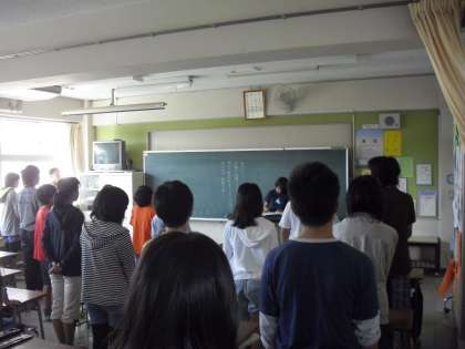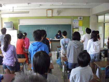 朝の会で・・・唄の練習・・・曲目は、“この星に 生まれて”歌う姿勢や口の開け方