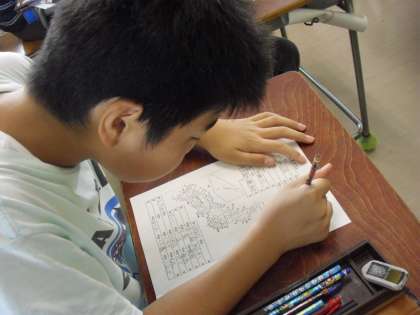 さぎそう学舎“九品仏小・八幡小・八幡中”の取組みの一つに、都道府県の位置がしっかり学習できているかの確認テストがあります。中1でも各小学校でも行います。