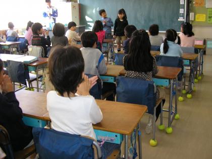 2年生は、朝の会の様子。日直の子どもが司会をしているところです。日直のスピーチも上手にしていました。