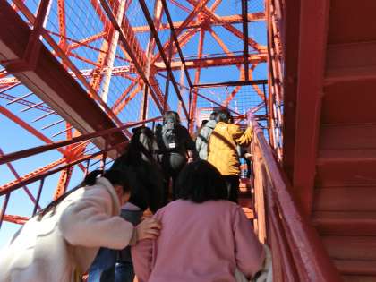 バス2台で社会科見学に出かけました。最初は、東京タワーです。メインデッキまで全員が、600段の階段を昇りきりました。