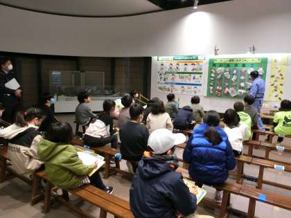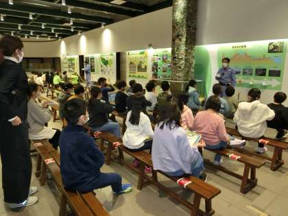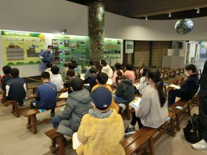 中央防波堤埋立処分場の中防管理事務所に着き、環境学習ホールでお話をうかがいながら学習しました。そのあとは、ガイドの方とバスに乗り、車窓から粗大ごみ破砕処理施設や不燃ごみ処理センター、中央防波堤外側埋立処分場の見学をしました。