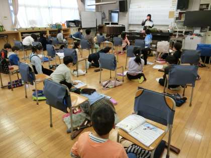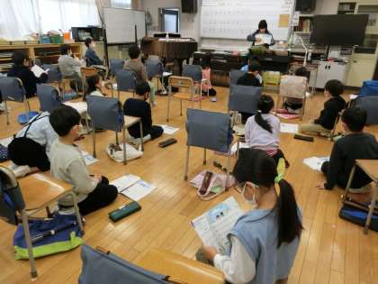 2組音楽「あのくものように」の題材で学習しました。4小節ごとの音楽のまとまりを感じ取って歌ったり、リコーダーで演奏したりできるように練習しました。