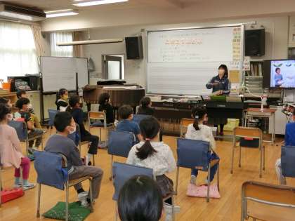 2組音楽「かぼちゃ」の題材(曲)で、小物打楽器の種類や演奏法を知り、曲に合わせてリズム打ちをしました。